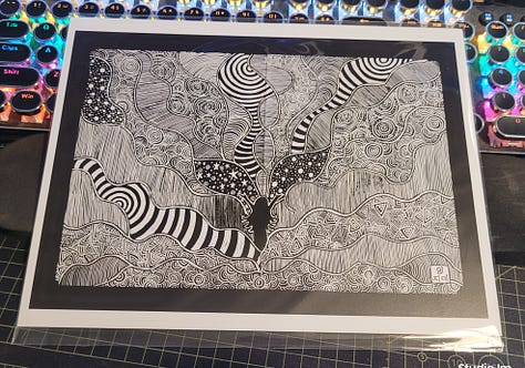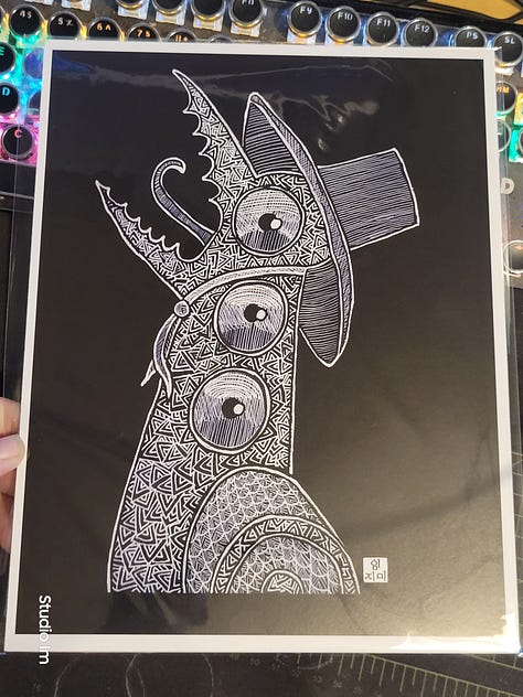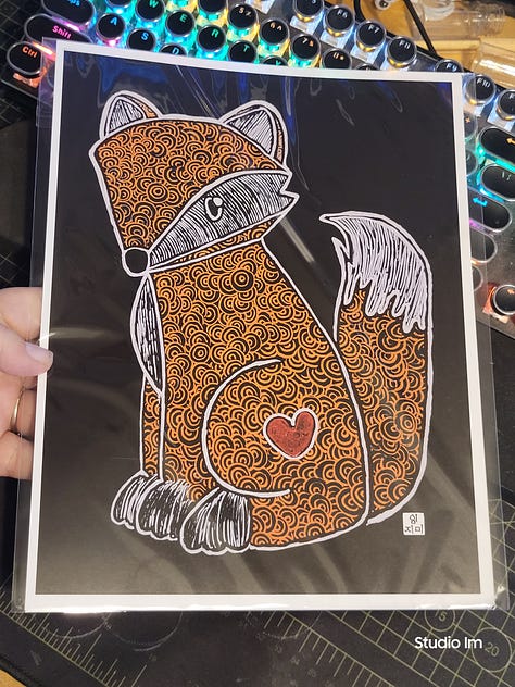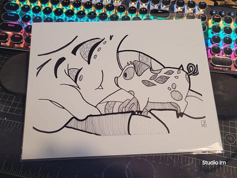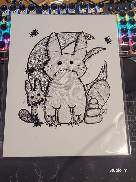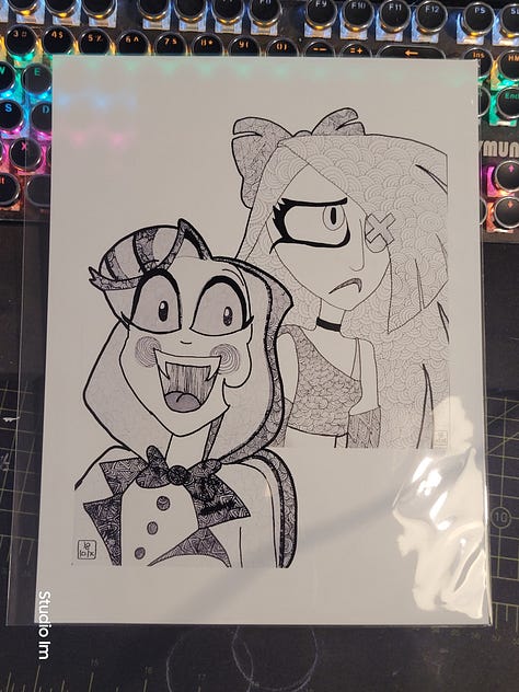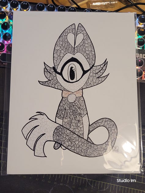 The original hand drawn pieces, each one was done with gel pens on 11x14 black multimedia paper. They’re already in cello bags with backing boards, just waiting to be adopted just in time for Christmas!